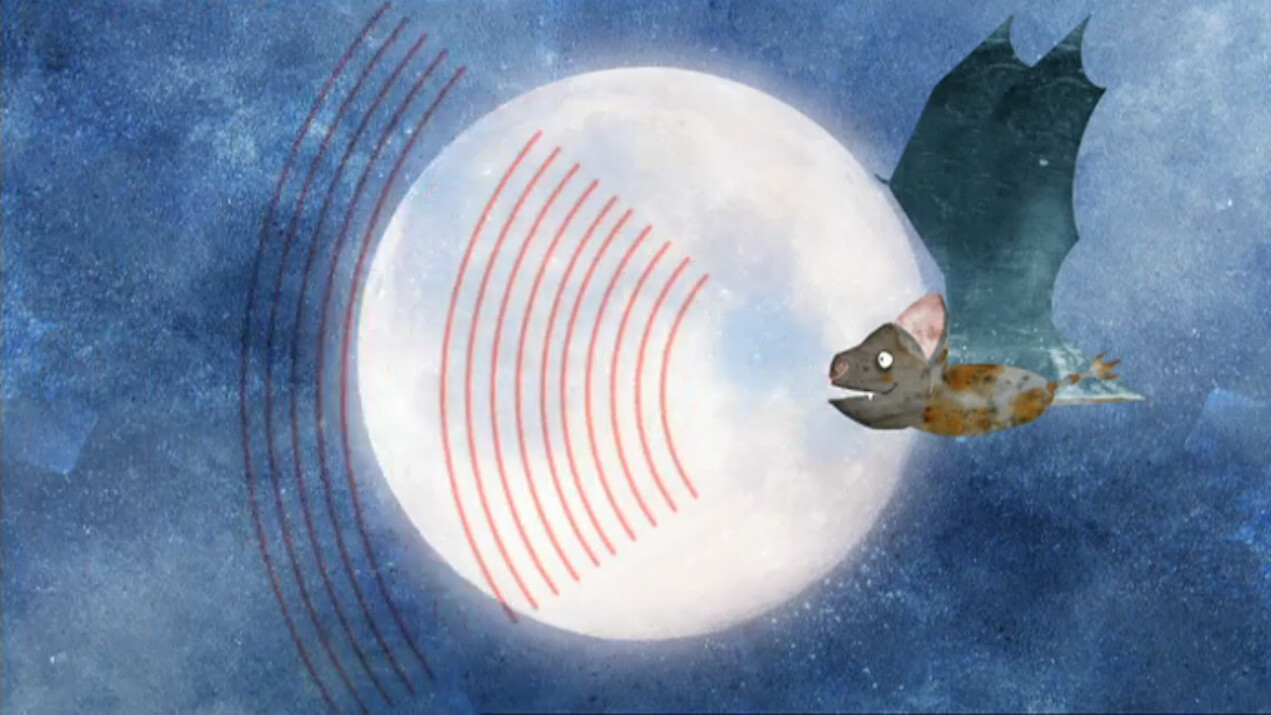 Als het erg donker is, zendt een vleermuis ultrasone geluiden uit. Deze geluiden zijn heel hoog zijn. Mensen kunnen deze niet horen. Deze geluiden weerkaatsen op een prooi en komen terug tot bij de vleermuis. Zo weet hij waar zijn prooi is. We noemen dit echolocatie.